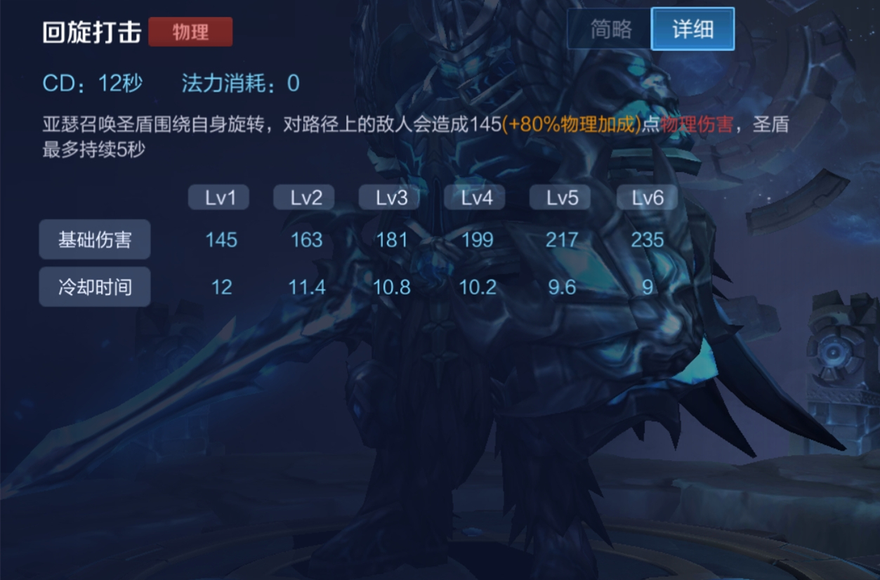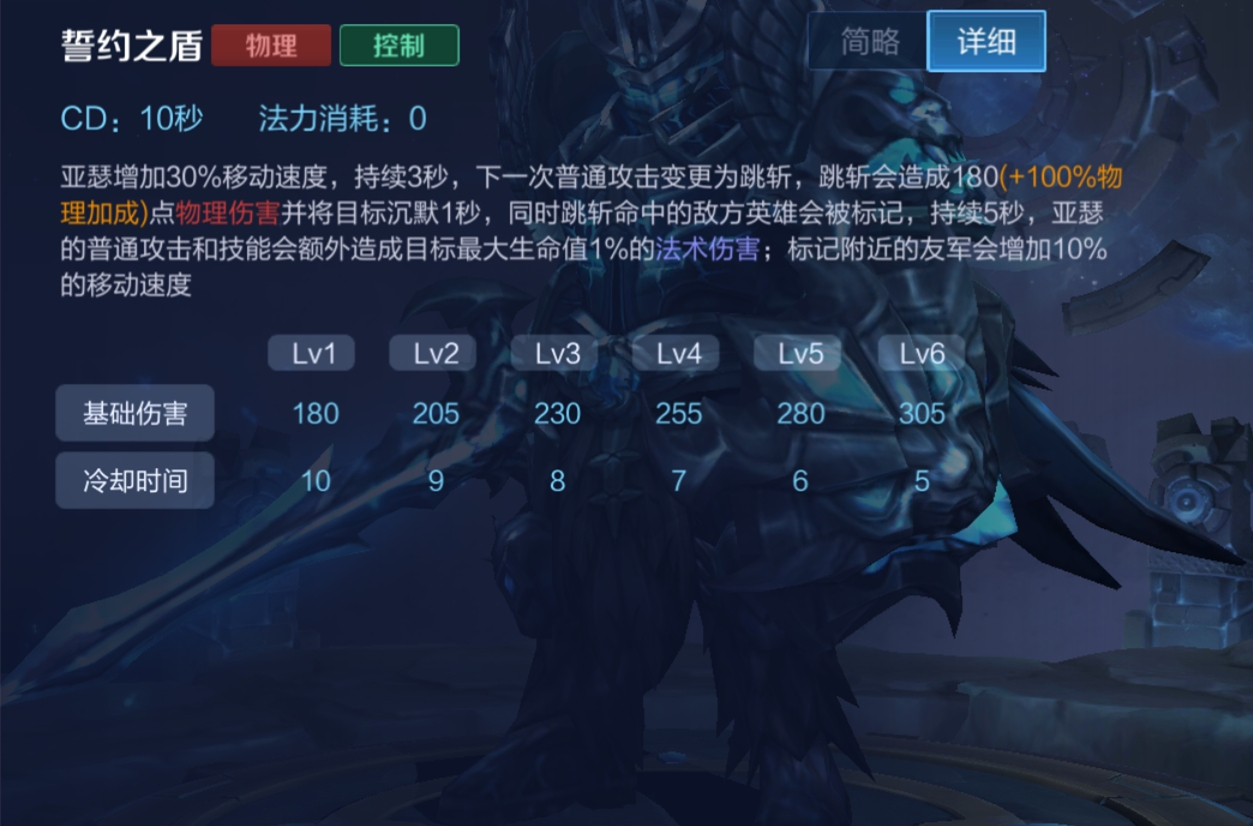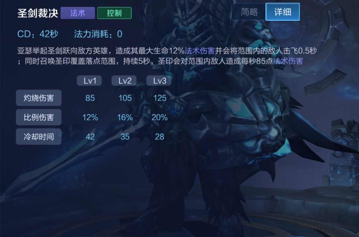 一技能在满级时的冷却时间是5秒,在拥有40%冷却缩减属性的情况下仅需要3秒冷却时间,而跳斩的持续时间也正好是3秒,也就是说亚瑟能快速打出两次沉默的效果。